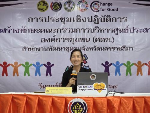 นางสาวเพ็ญโฉม สีแสด พัฒนาการอำเภอชุมพวง เดินหน้าขับเคลื่อนงานพัฒนาชุมชนตามนโยบายจังหวัด โดยมอบหมายให้ นางสาวนางสาวเพ็ญประภา สาระรัตน์ นักวิชาการพัฒนาชุมชนปฏิบัติการ นำทีมเครือข่ายคณะกรรมการบริหารศูนย์ประสานงานองค์การชุมชน (ศอช.) และผู้นำชุมชนตำบลสาหร่าย เข้าร่วมโครงการประชุมเชิงปฏิบัติการคณะกรรมการบริหารศูนย์ประสานงานองค์การชุมชน (ศอช.) ประจำปี 2569 เพื่อเสริมสร้างศักยภาพผู้นำและวางแผนพัฒนาพื้นที่แบบบูรณาการ ภายใต้แนวคิด “CD Korat Happiness Together”