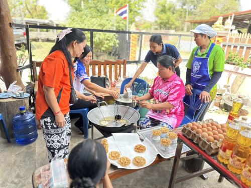 พร้อมทั้งมีการสาธิตอาชีพและฝึกอาชีพขนมดอกจอก เพื่อนำทักษะความรู้ไปต่อยอดอาชีพและส่งเสริมรายได้ของกลุ่มเป้าหมาย